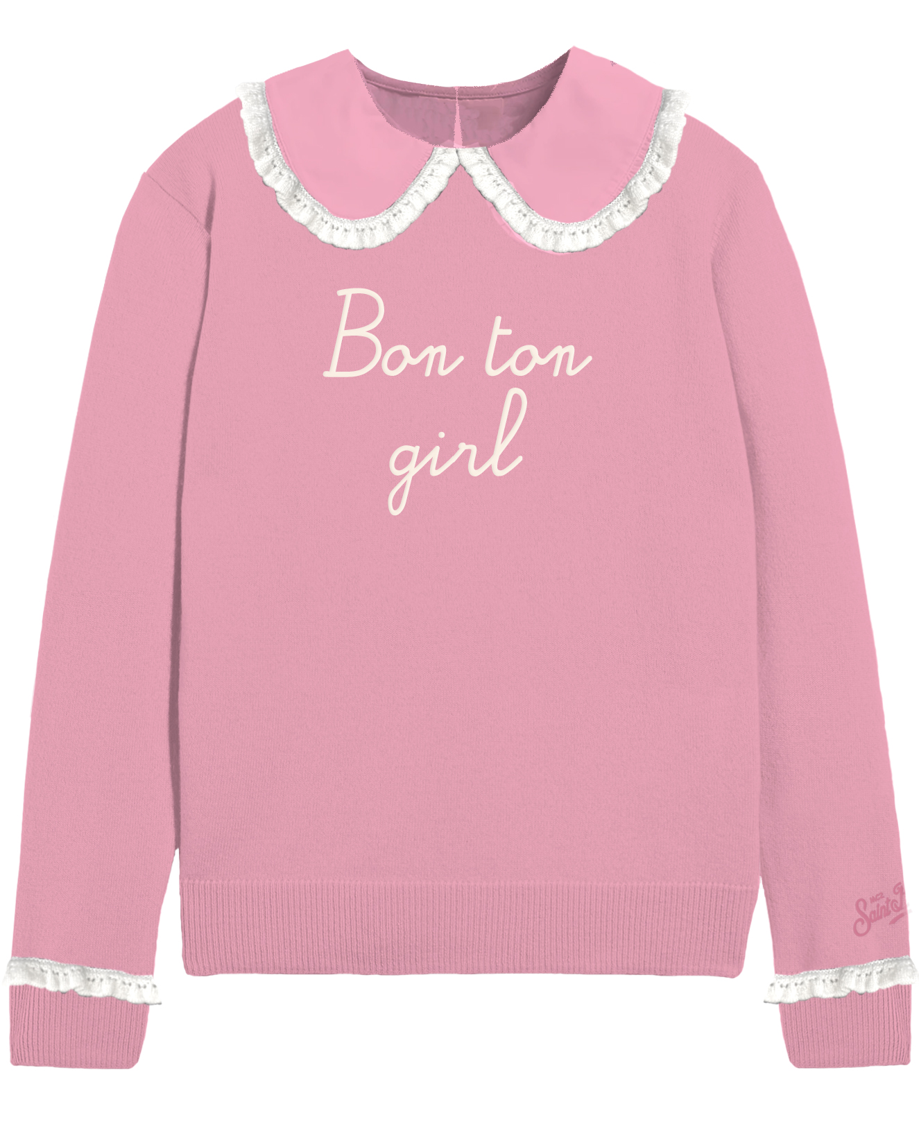 Pull con scritta "Bon Ton girl" con colletto ricamato
