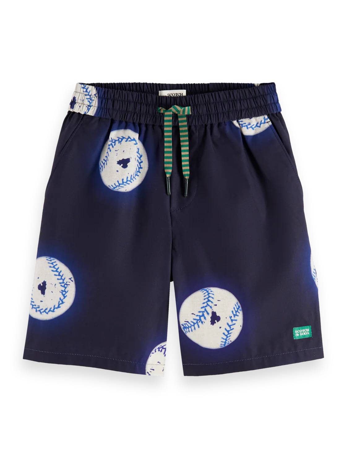 Bermuda con stampa con logo applicato su davanti con coulisse a contrasto