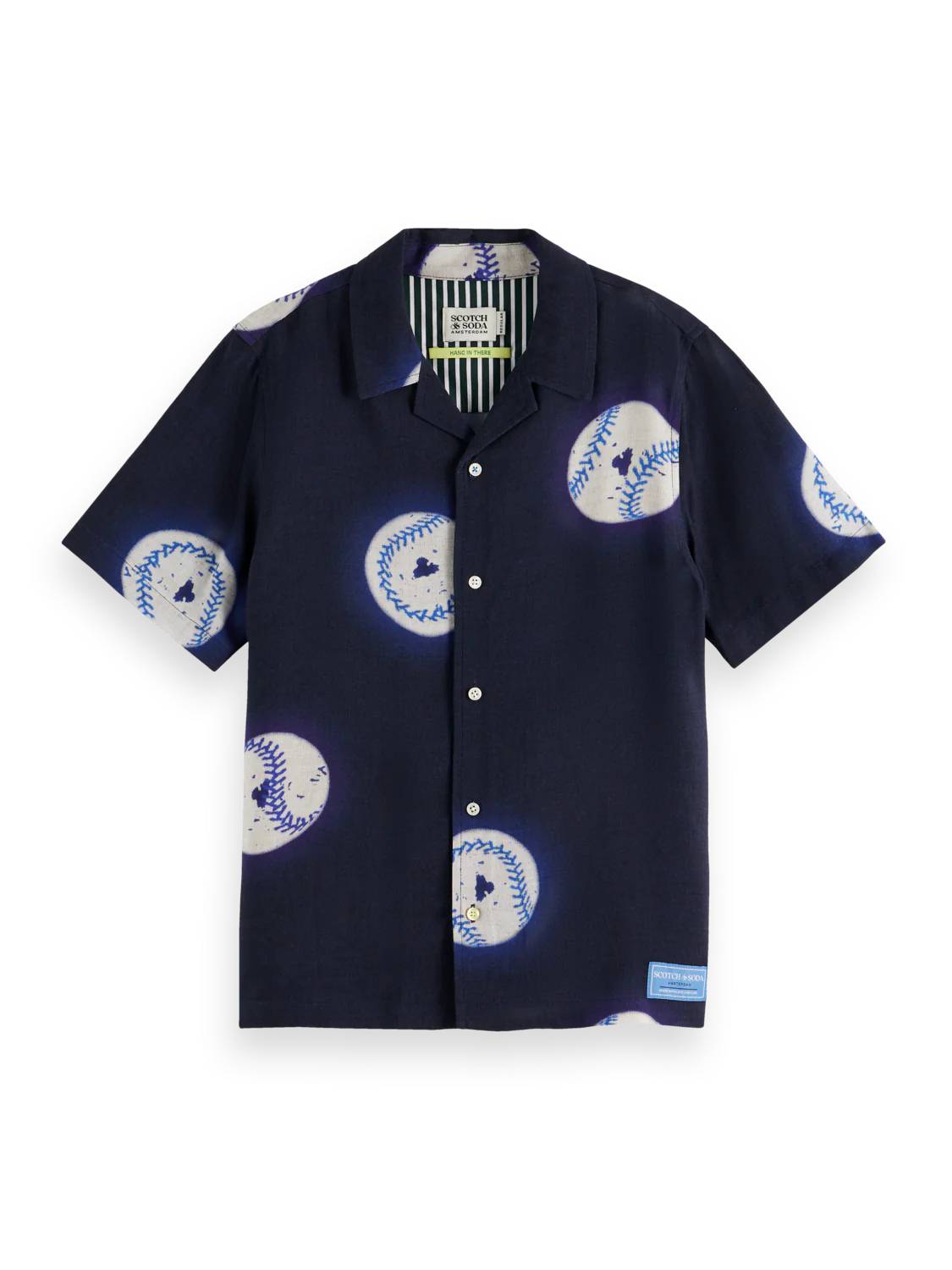 Camicia con stampa mezza manica con logo applicato sul davanti