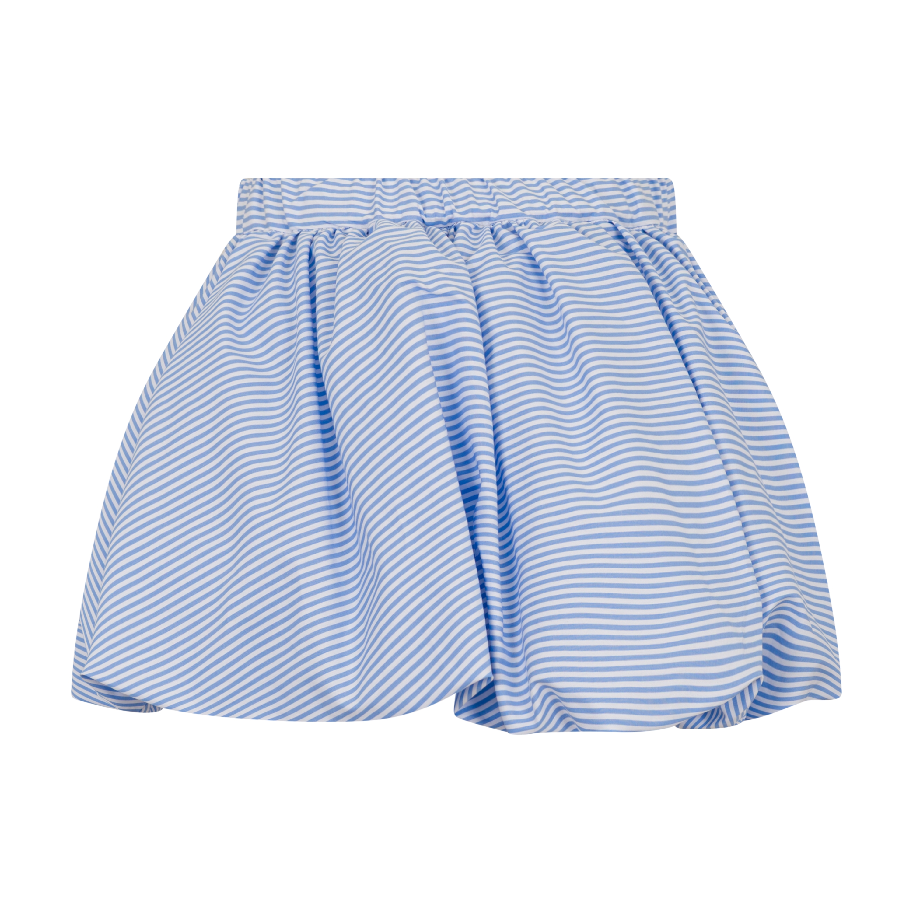 motivo a righe azzurre con dettagli arricciati e elastico in vita.