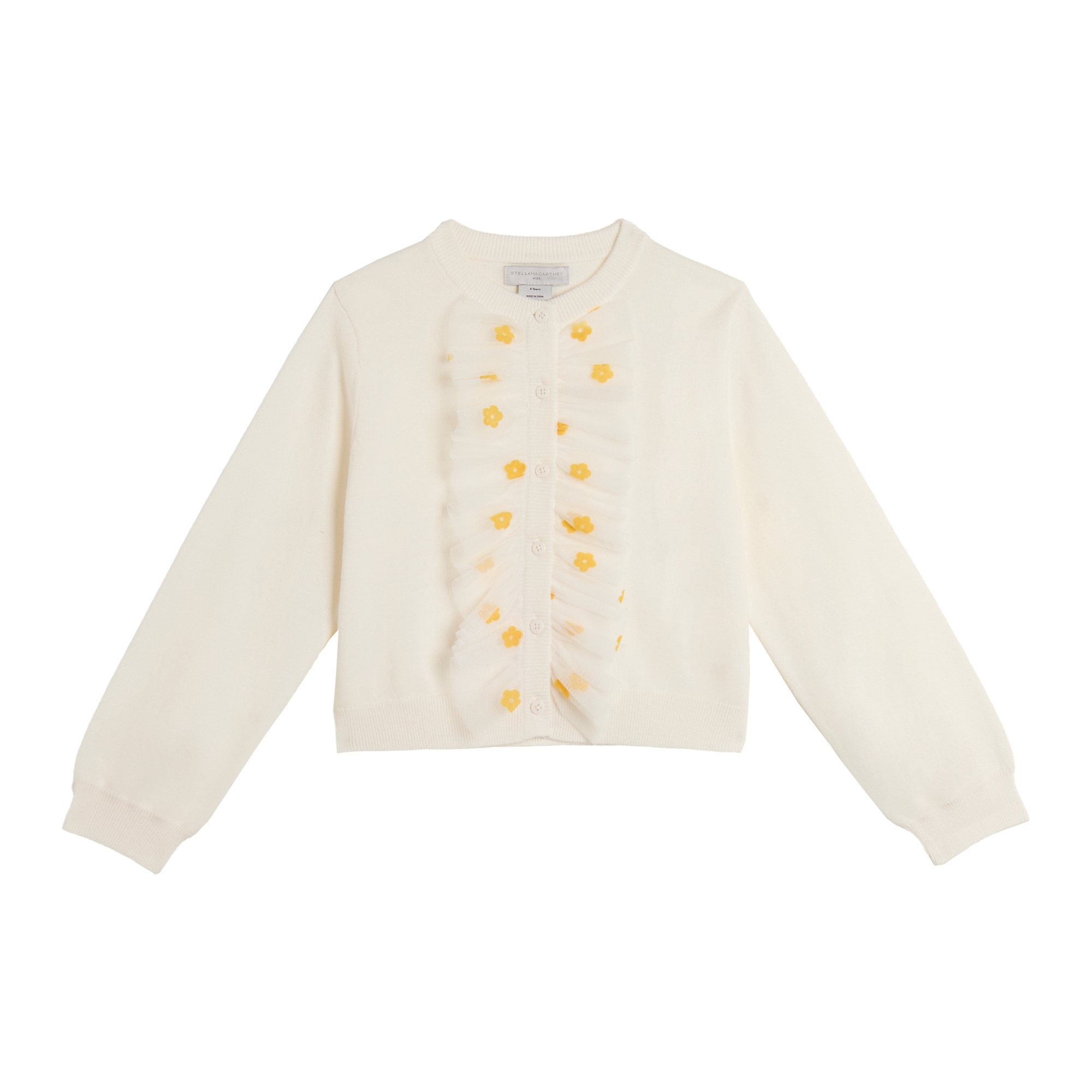 Cardigan panna , bottoncini frontali e ruches.