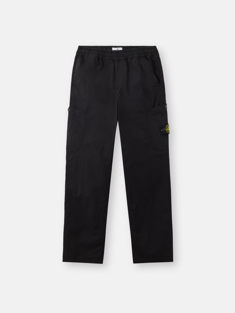 Pantalone cargo in ripstop di cotone biologico di origine militare, con disegno a quadri personalizzato per Stone Island. L'aggiunta di una componente elasticizzata alla trama del capo offre un comfort ottimale e una grande libertà di movimento. Tinto in capo con ricette specifiche.