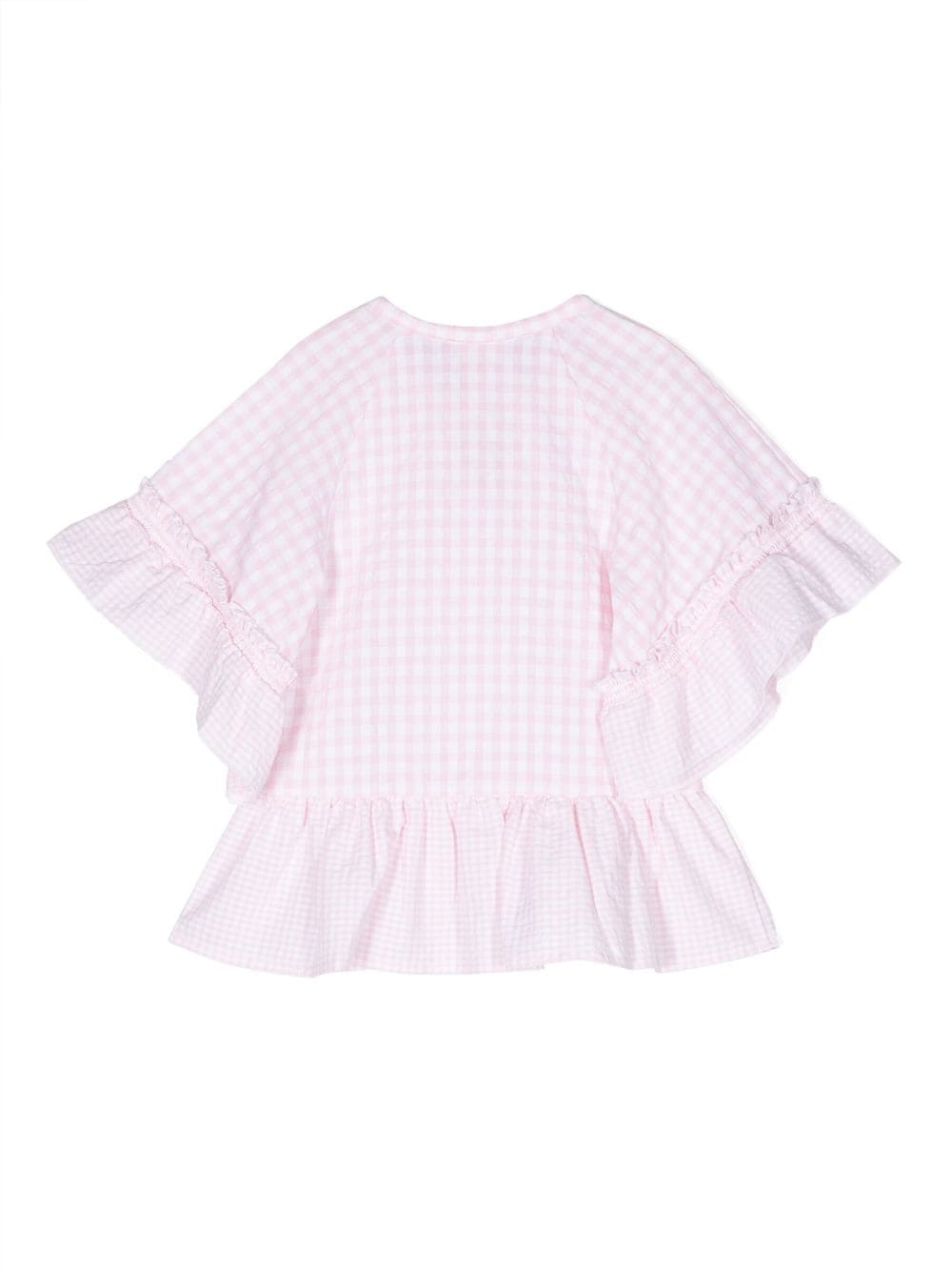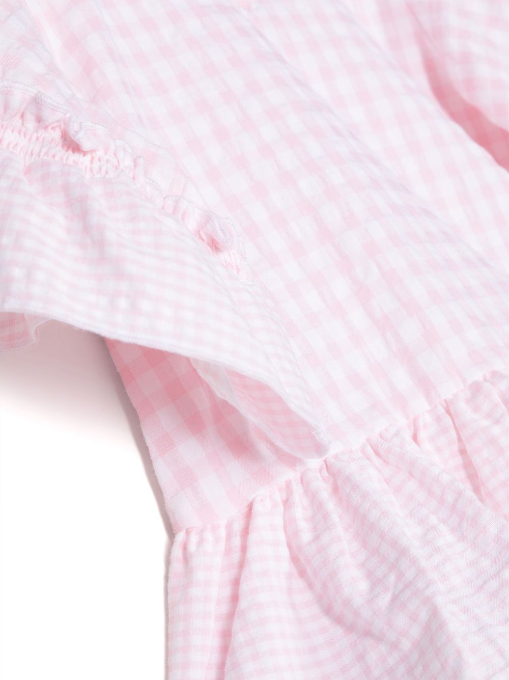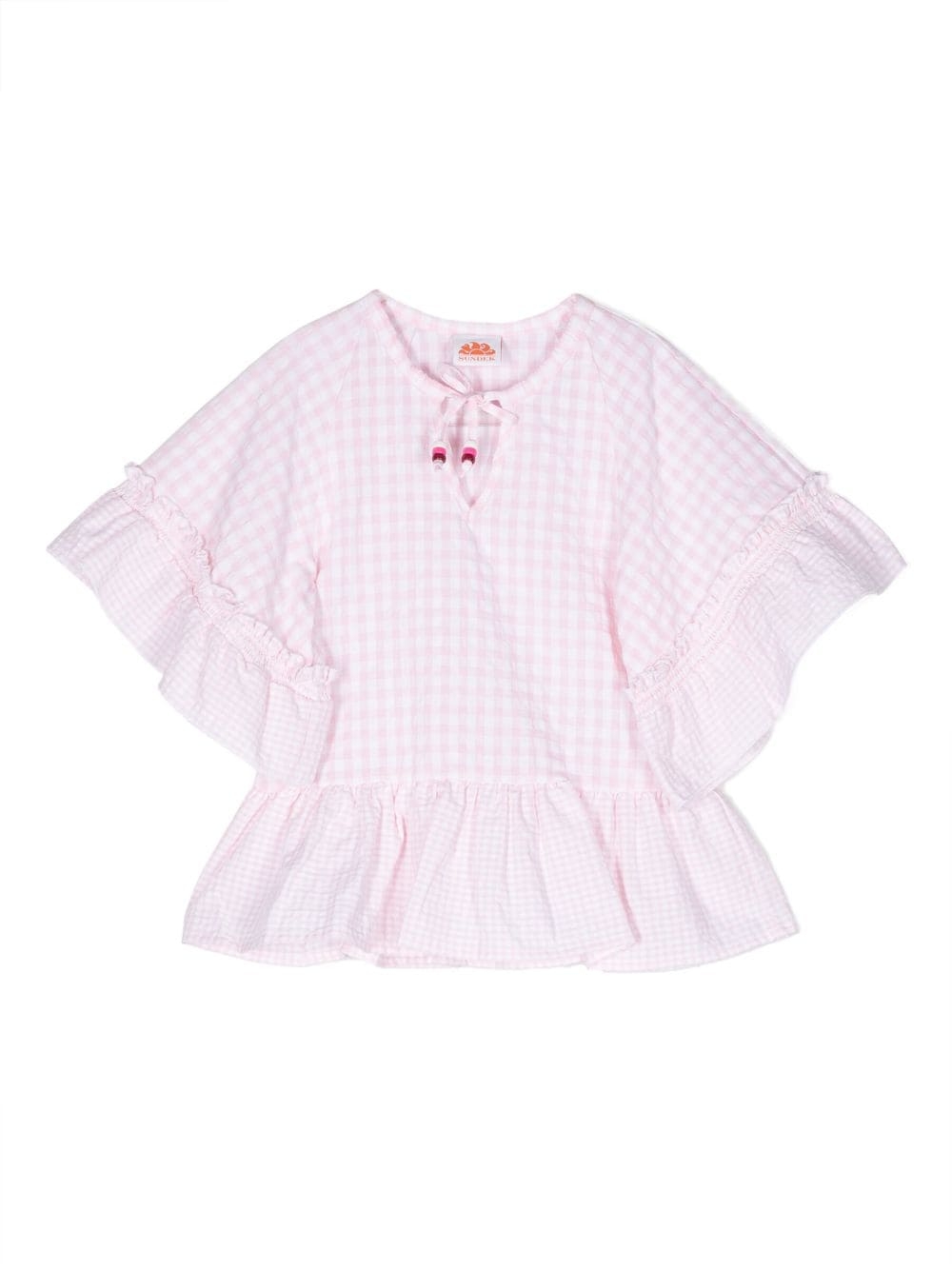 Copricostume a quadretti con colletto con coulisse, maniche corte e orlo increspato.