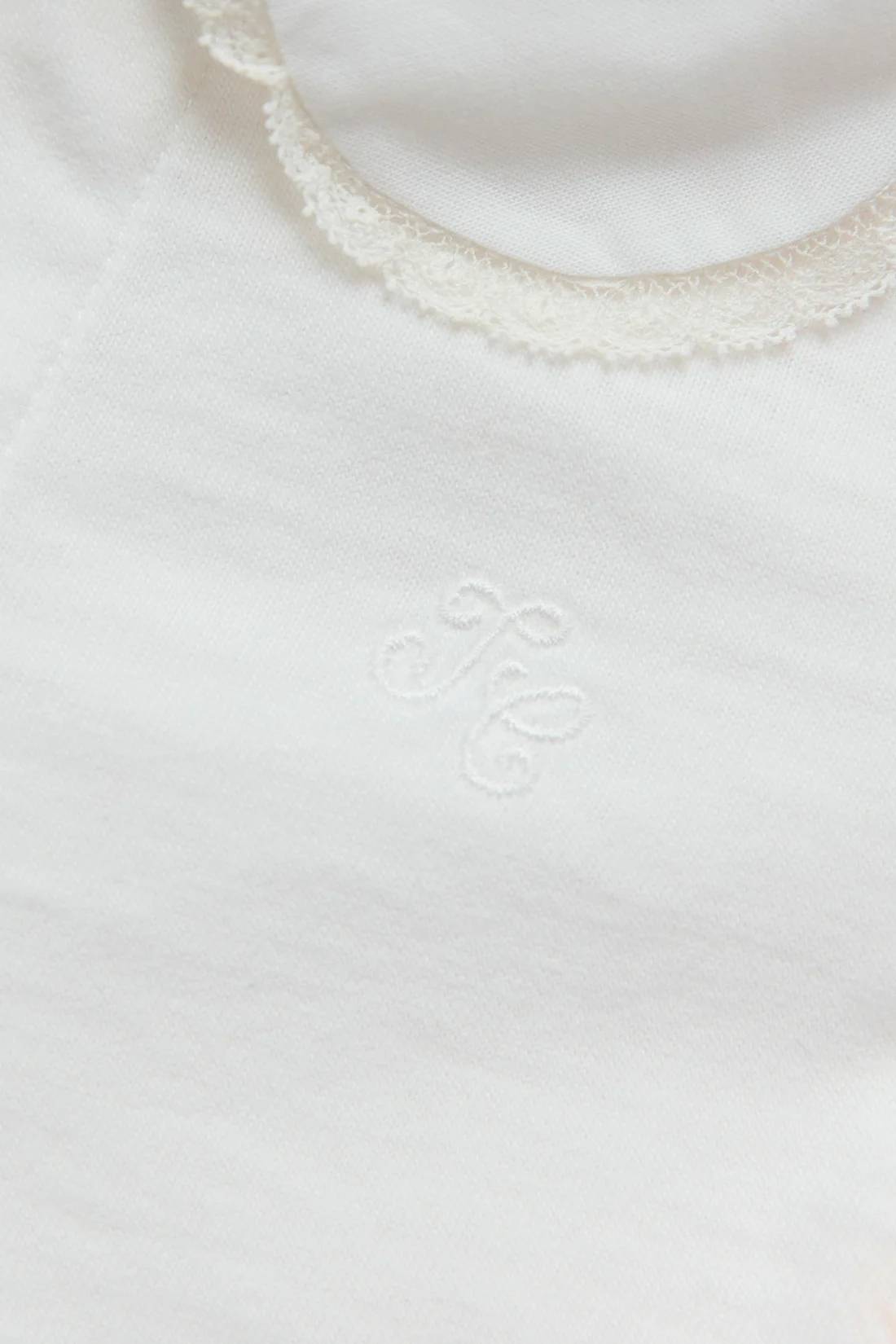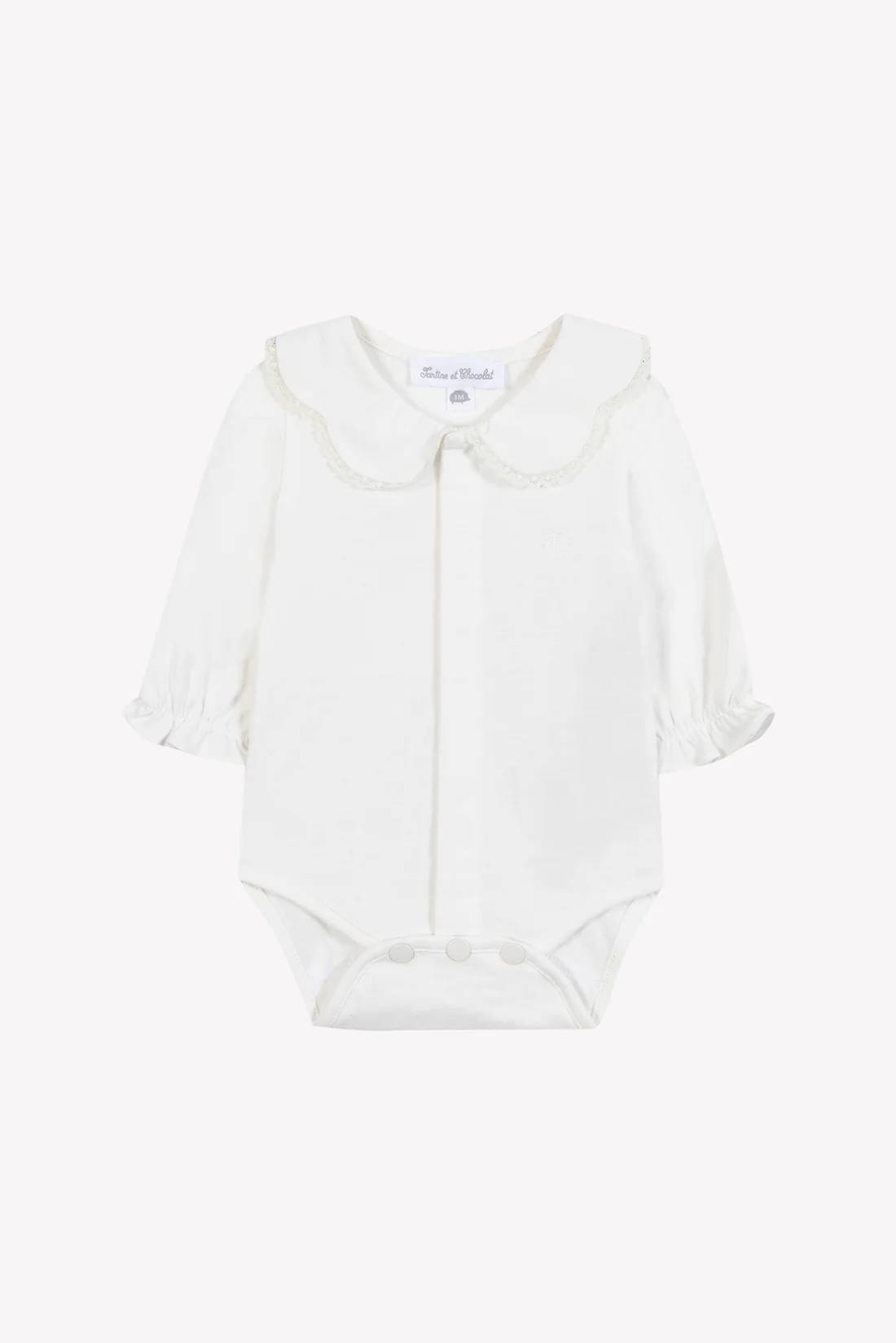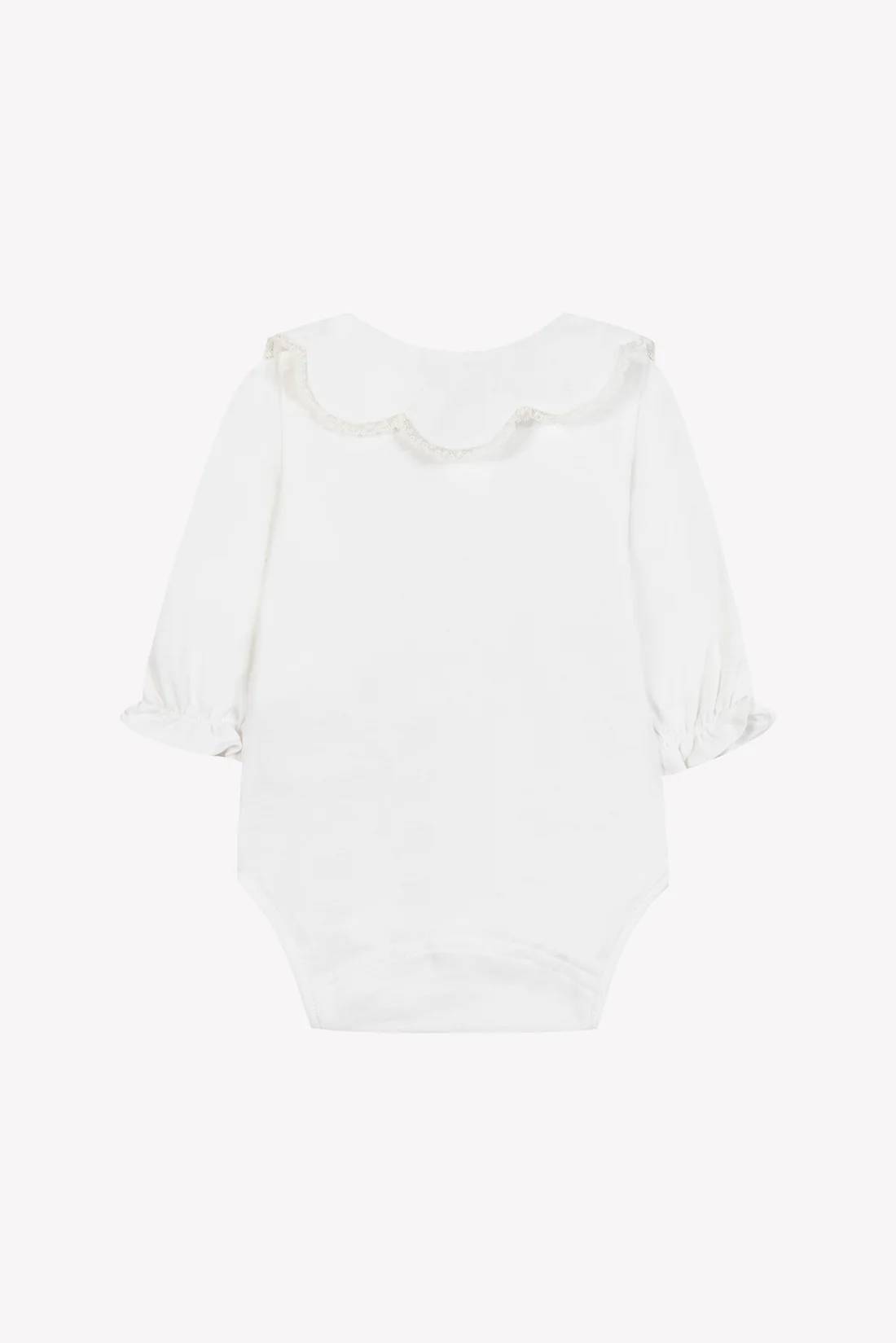 Body con ricamo logo,con colletto a smerlo maniche con smerlo e abbottonatura sul davanti