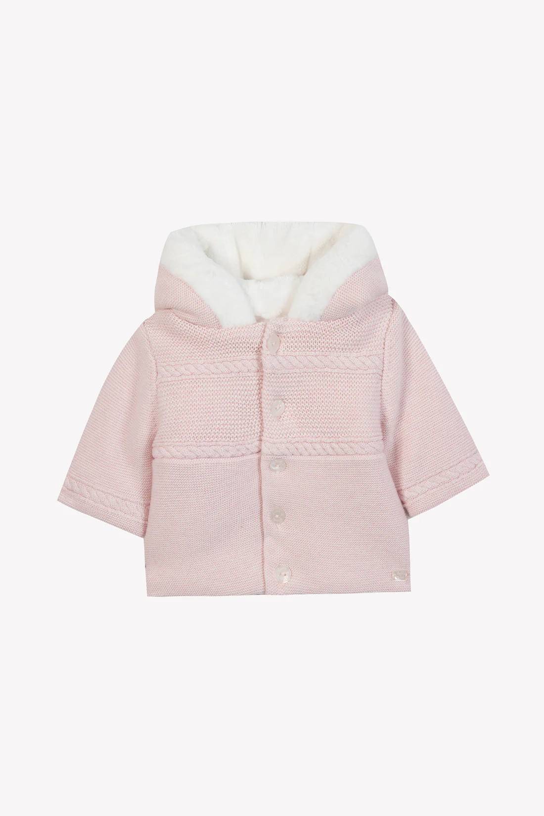 Cappotto con pelliccia rosamaglia intrecciatascollo con cappucciochiusura frontale con abbottonaturamaniche lunghe100% poliestere Imitazione Pelliccia