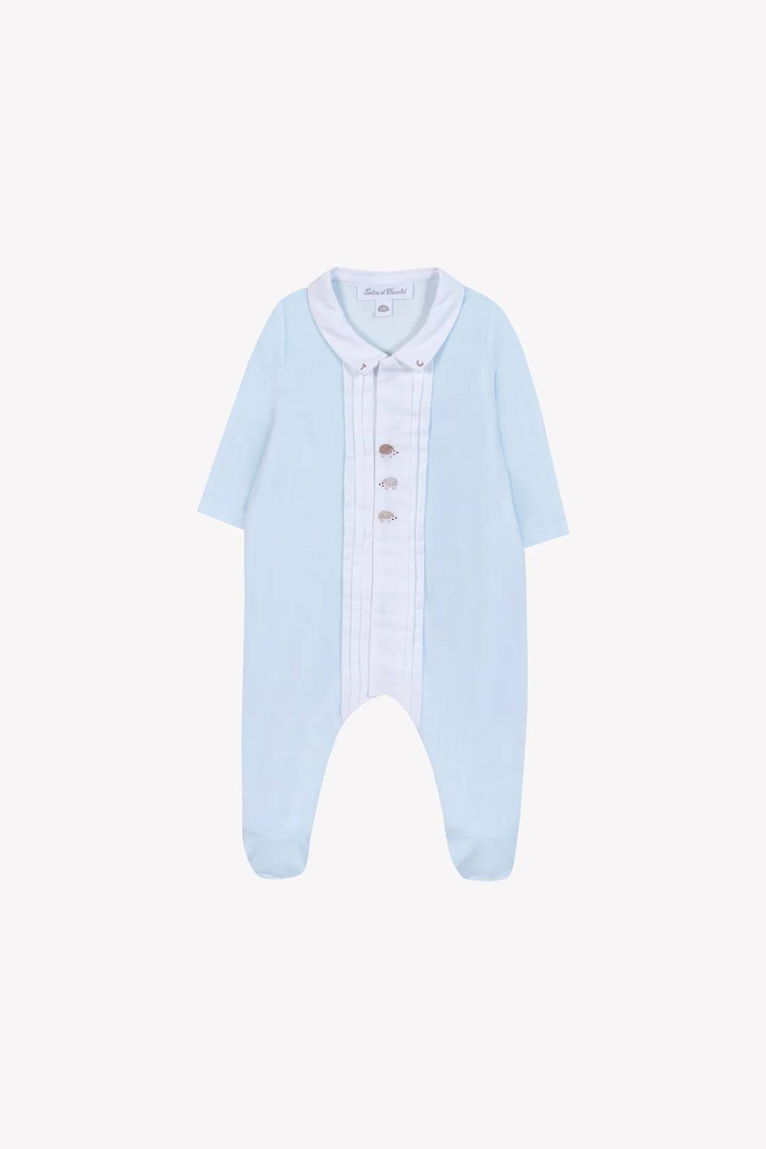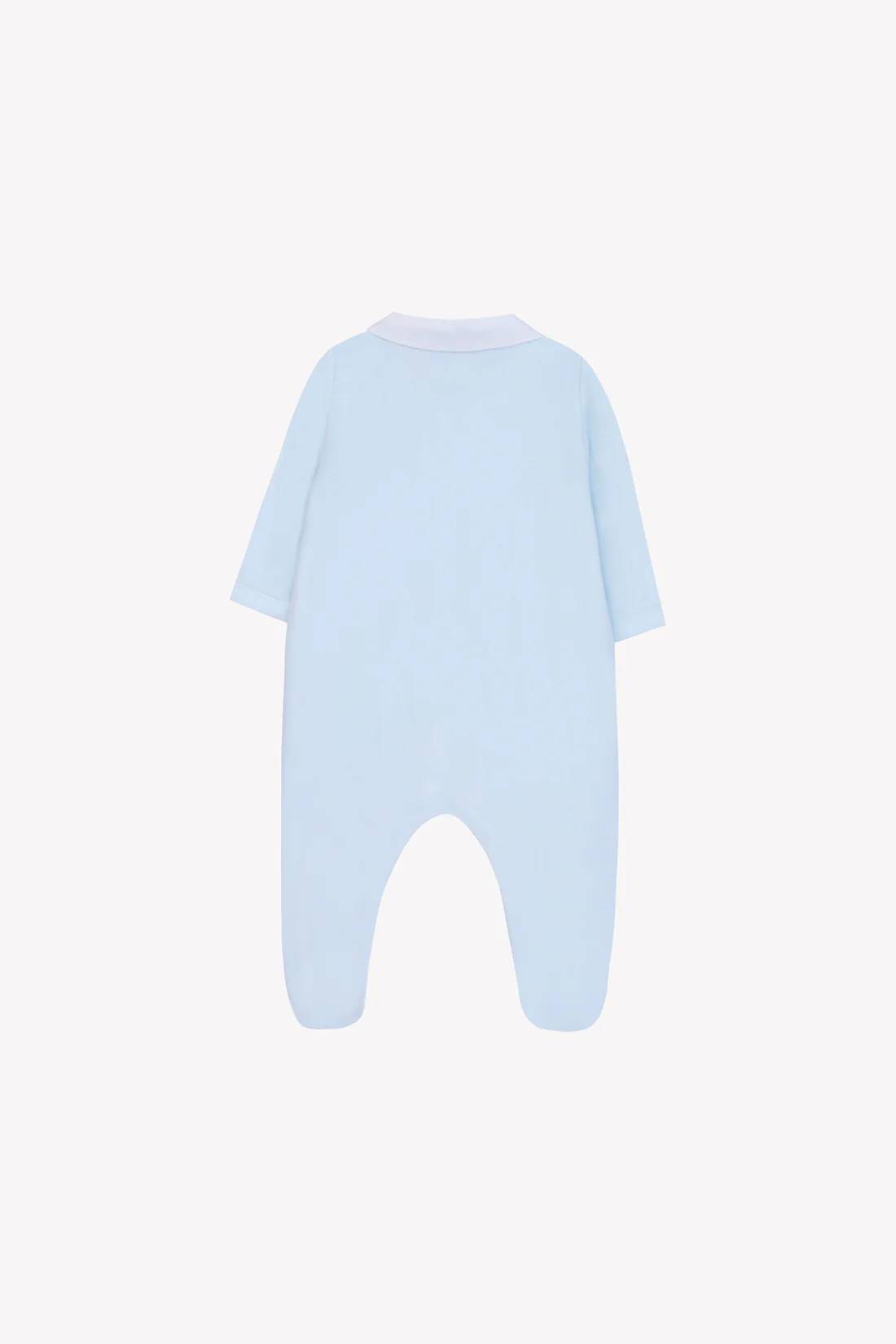 Tutina con ricamo azzurra e bianca con abbottonatura sul davanti
