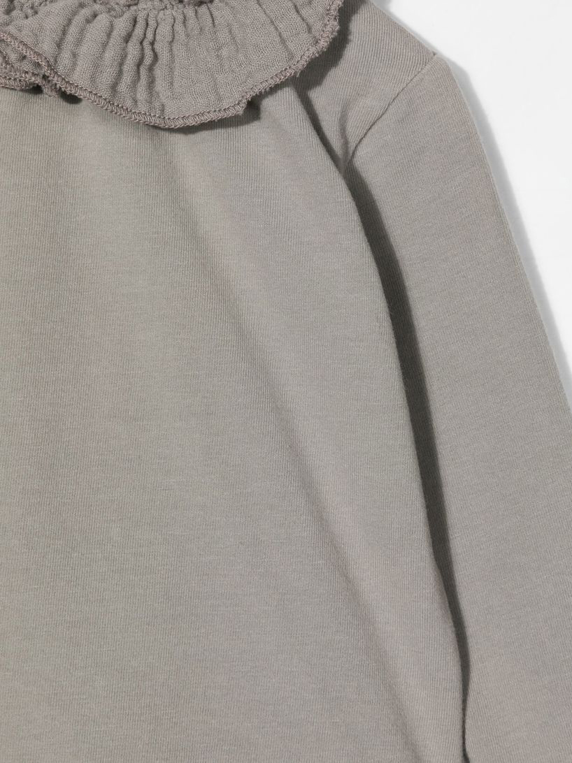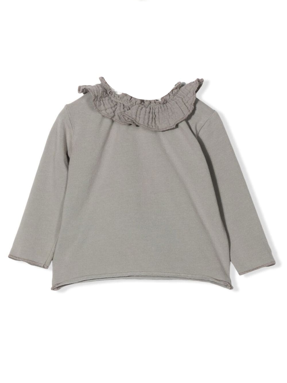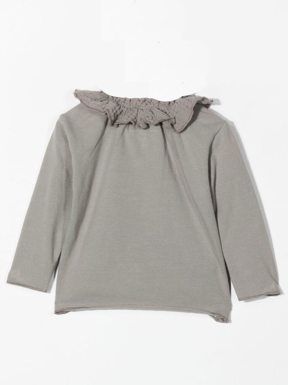 Misto cotone, dettaglio con ruches, scollo rotondo, maniche lunghe e orlo dritto.