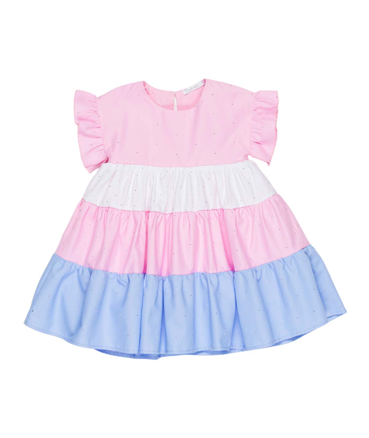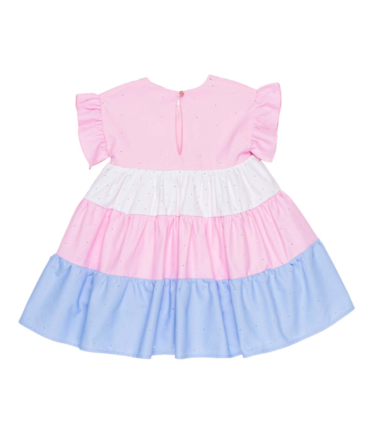 Abito girocollo con maniche con volant e chiusura con un bottone sul retro