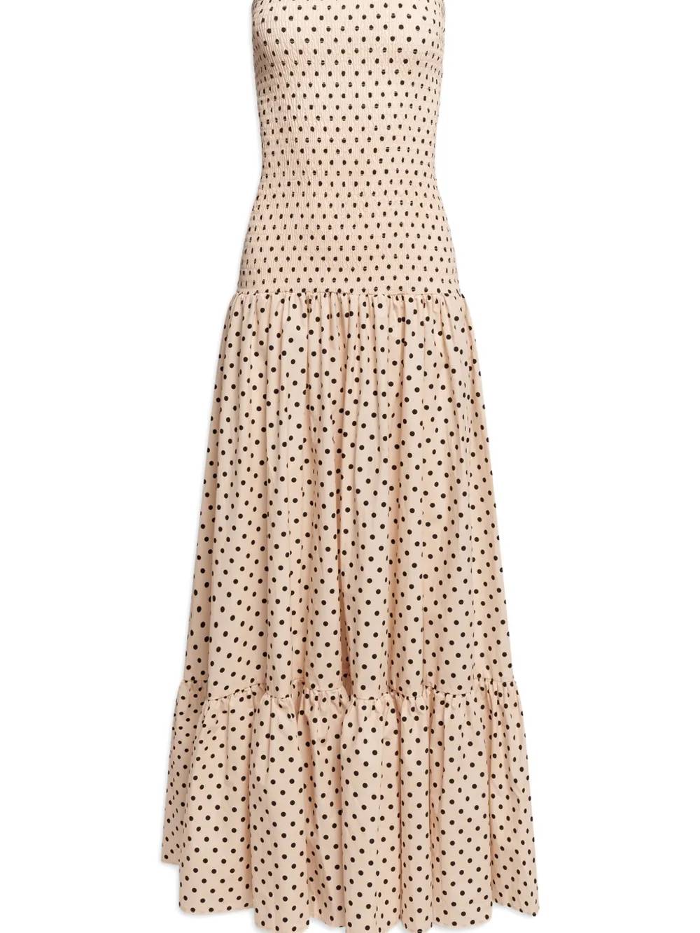Abito con pois orlo senza spalline con motivi beige con alze