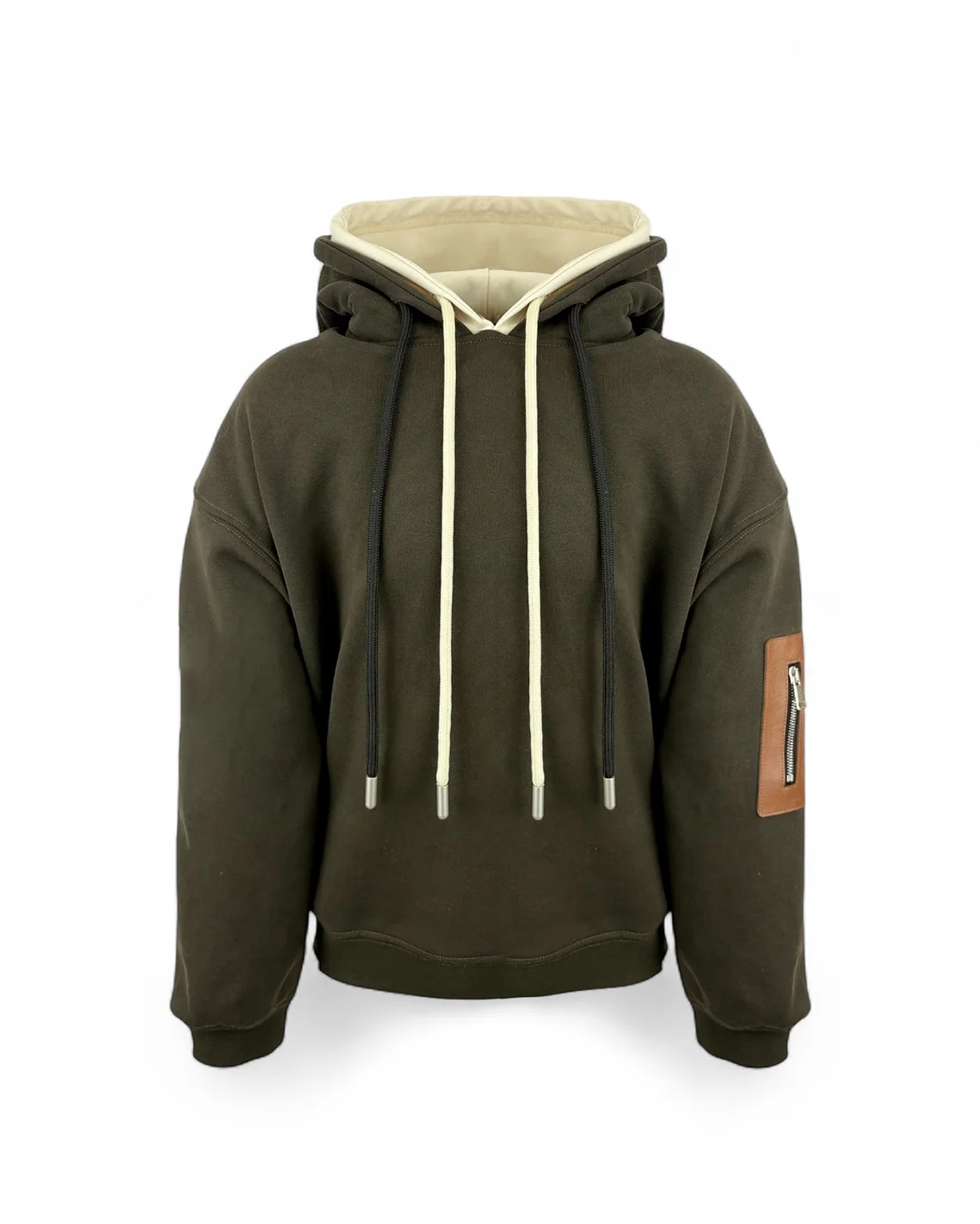 Felpa con cappuccio , di colore verde-beige